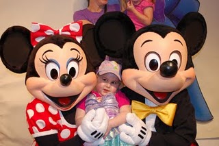The visit was wonderful and both Mickey and Minnie conveyed to us, even without words, the care and concern they felt for us with extra long hugs for Mommy and Daddy from Minnie and multiple extra firm handshakes from Mickey as if he was trying to let us know through the glove how much he sympathized.